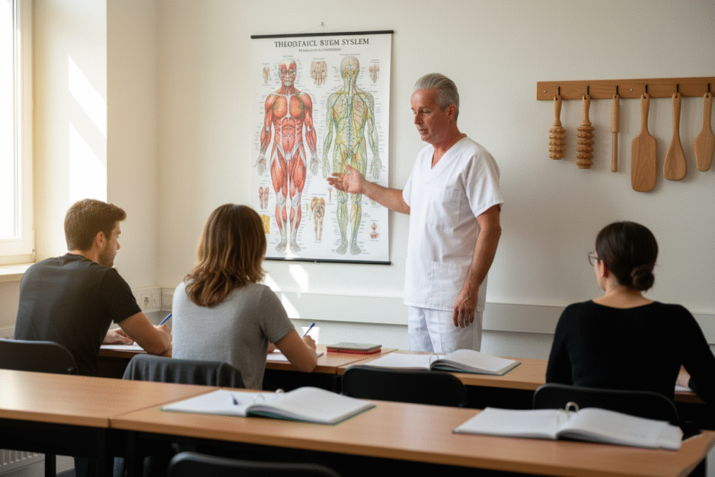 Vermittlung von anatomischem Wissen, Wirkungsweise der Massage und theoretischen Grundlagen für sichere und kompetente Anwendung.
